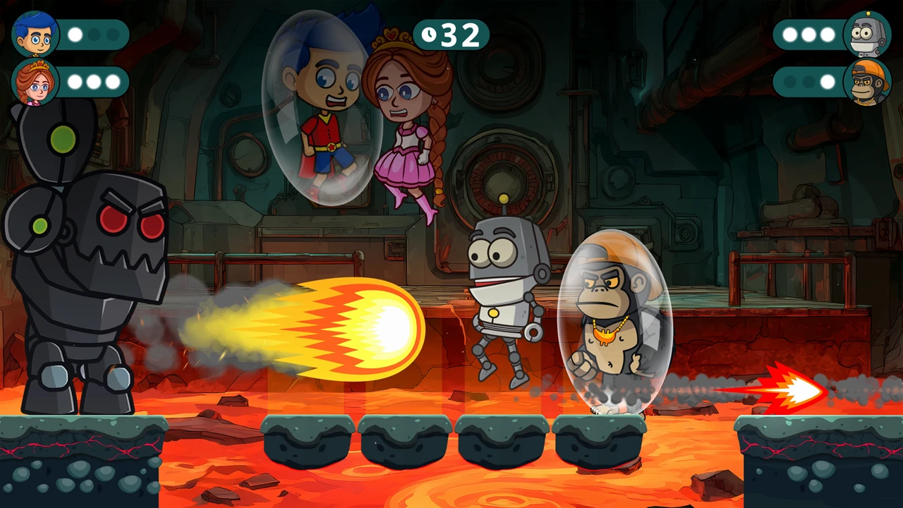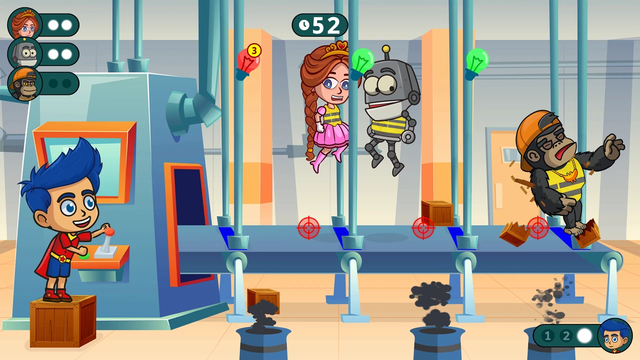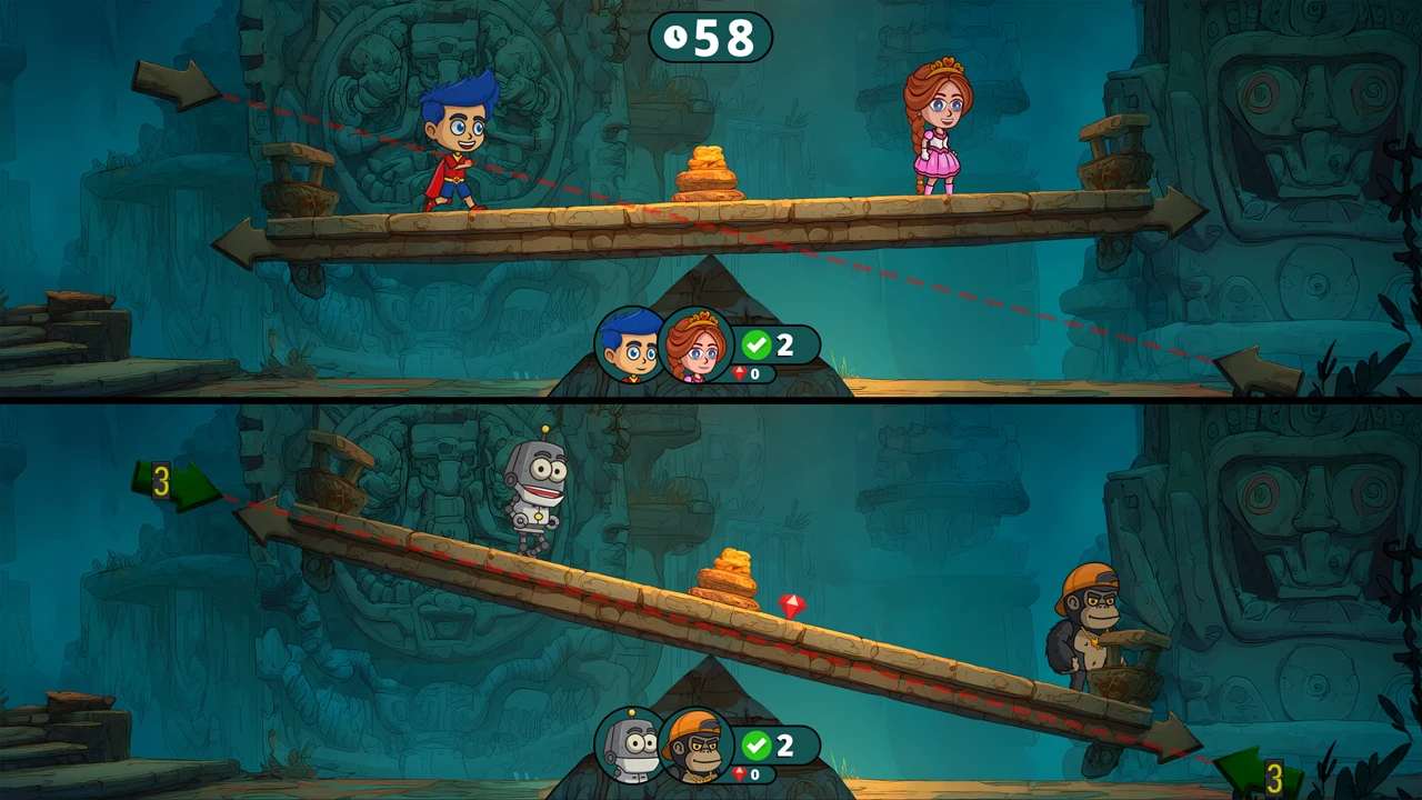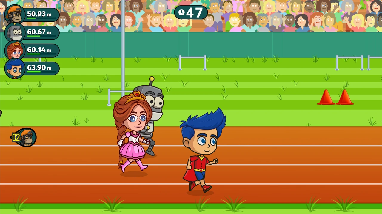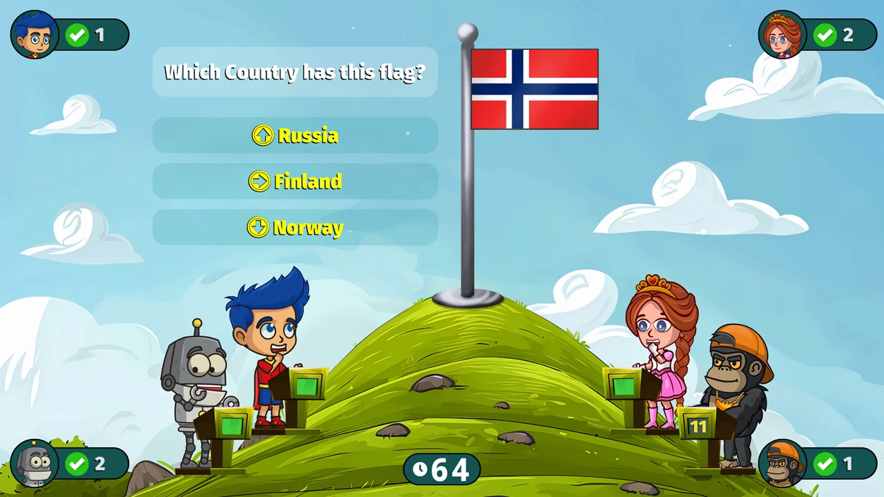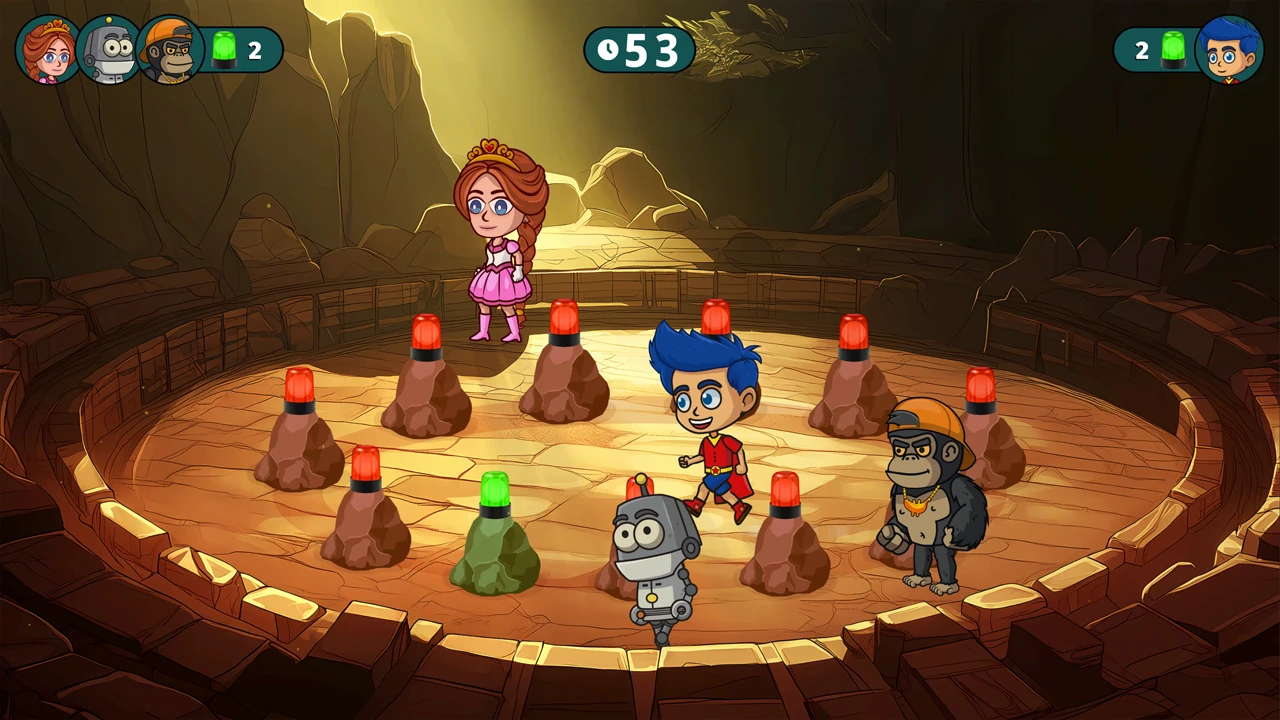 Jump into a vibrant 2D cartoon world featuring 80 quick games across 5 game boards, where kids and adults master educational challenges in math, geography, logic, memory, reflexes, science, chemistry, arts, and anatomy — plus fun games and nostalgic classics — all while competing for crowns and gems!